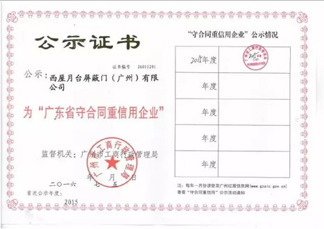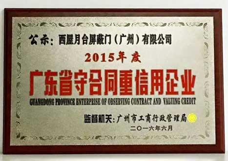 ¹ãÖÝÎ÷ÎÝ»ñµÃ2015ÄêÄê¶È¡°¹ã¶«Ê¡ÊØÌõÔ¼ÖØÐÅÓÃÆóÒµ¡±Ö¤Êé